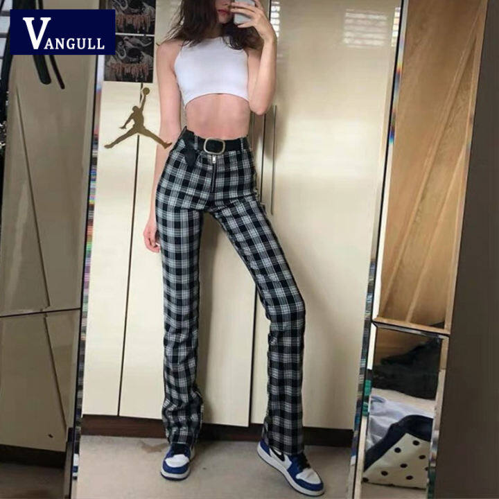 TCJULY New 2019 Stylish High Waist checkered joggers womens