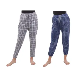 Grey/Blue Checkered Printed Joggers checkered joggers womens