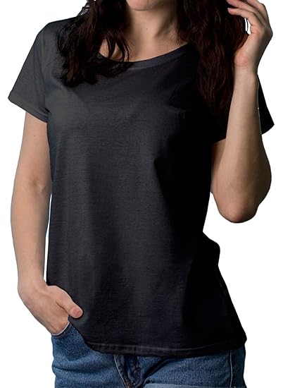 Plain Women's Black Half Sleeve Round plain black t shirt womens