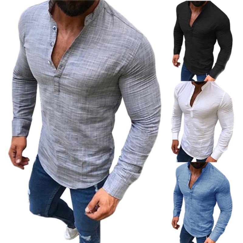 Men Casual Slim Fit Long Sleeve Shirt plain shirt shopee