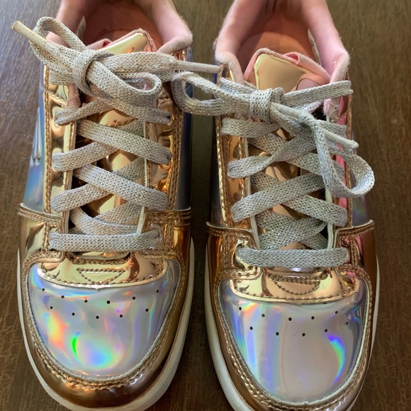 Goldie Shiny Shaker Sneaker - Rose Gold shiny skechers