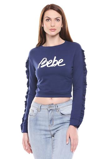 Buy BEBE Womens Round Neck Printed Crop navy sweatshirt womens