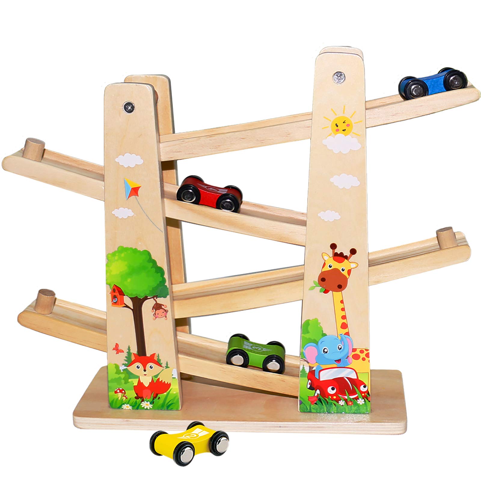Set Wooden Jungle Race Car,Racing Track zig zag car toy
