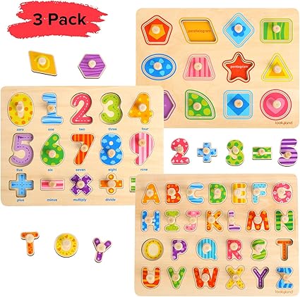 Tookyland Kids Wooden Peg Puzzle Set wooden peg jigsaws