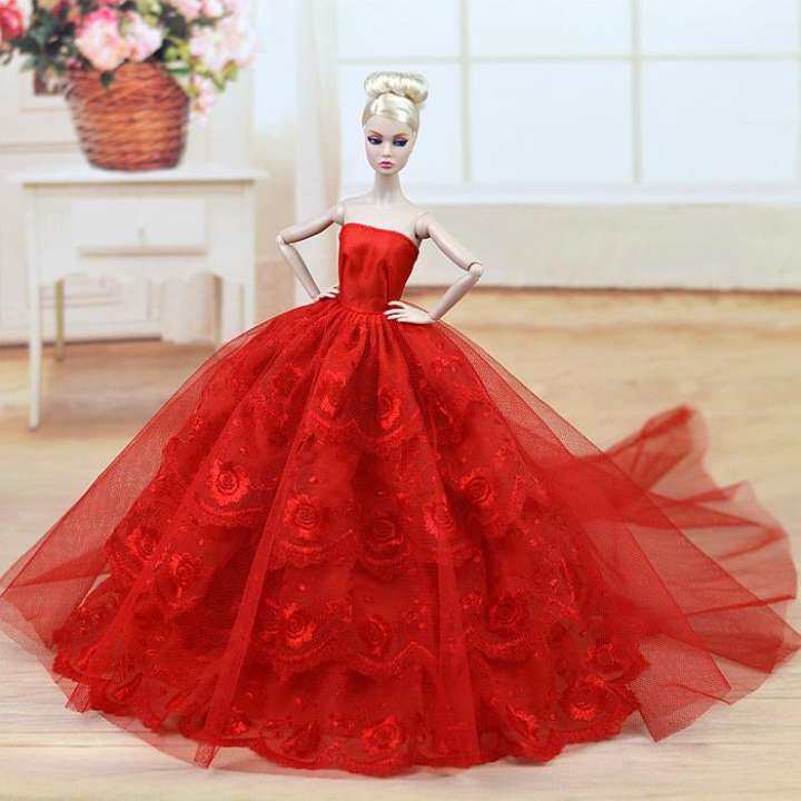 JANYAS CLOSET Maroon Barbie Doll Dress barbie type gown