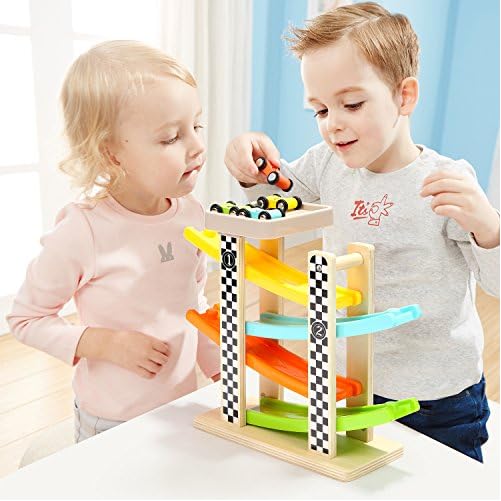 TOP BRIGHT Wooden Car Ramp Toys for 1 2 car gifts for 2 year old boy