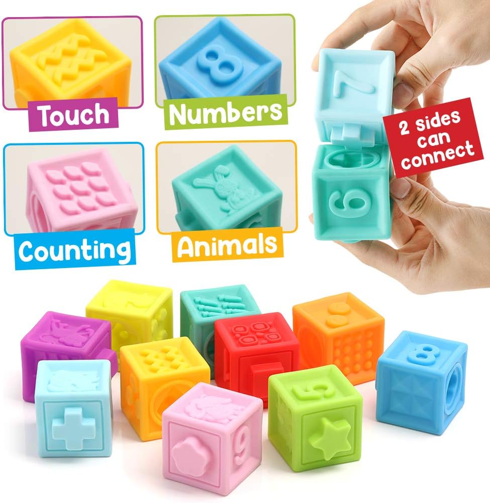 BOBXIN 15 PCS Baby Blocks Toys Soft sensory stacking blocks