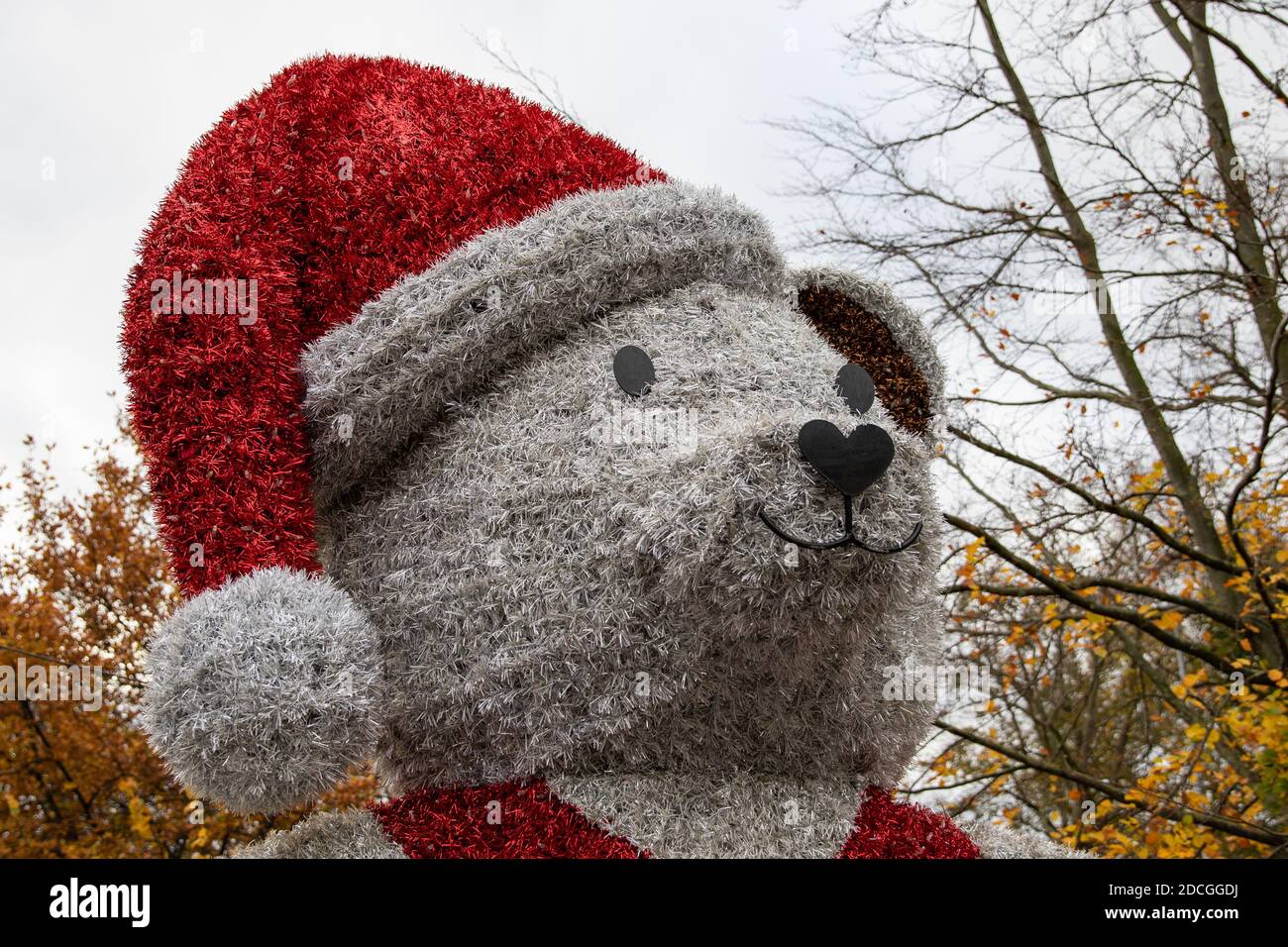 London, UK. 21st November, 2020. A large christmas teddy