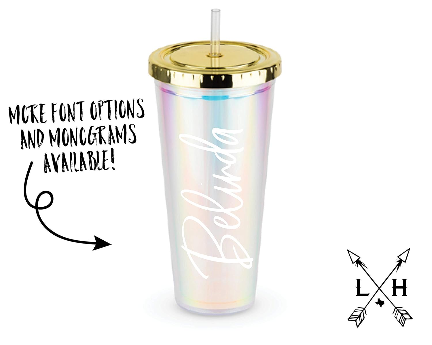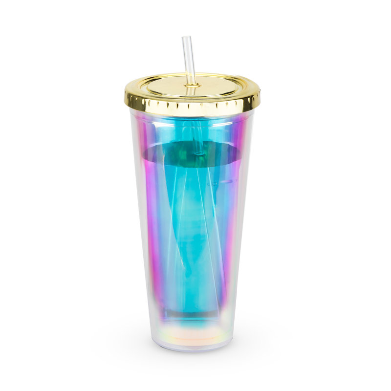 Iridescent tumbler cup with straw