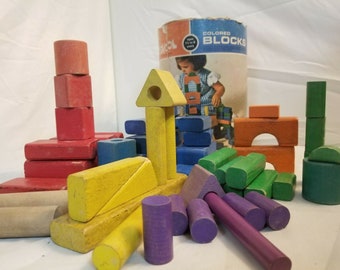 vintage Playskool colored wood blocks