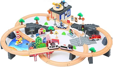 Pkjskh 92 PCS Fire Station Rail Train train sets for 6 year old boy