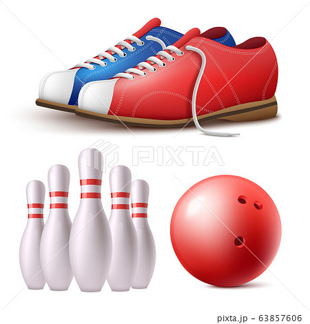 Set of bowling skittles, ball and shoes realistic bowling set