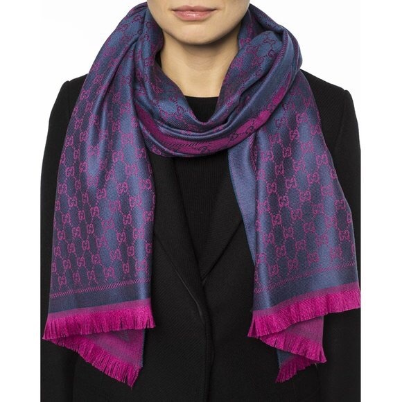 Pink / Blue Wool Silk GG Jacquard Scarf gucci jacquard wool scarf