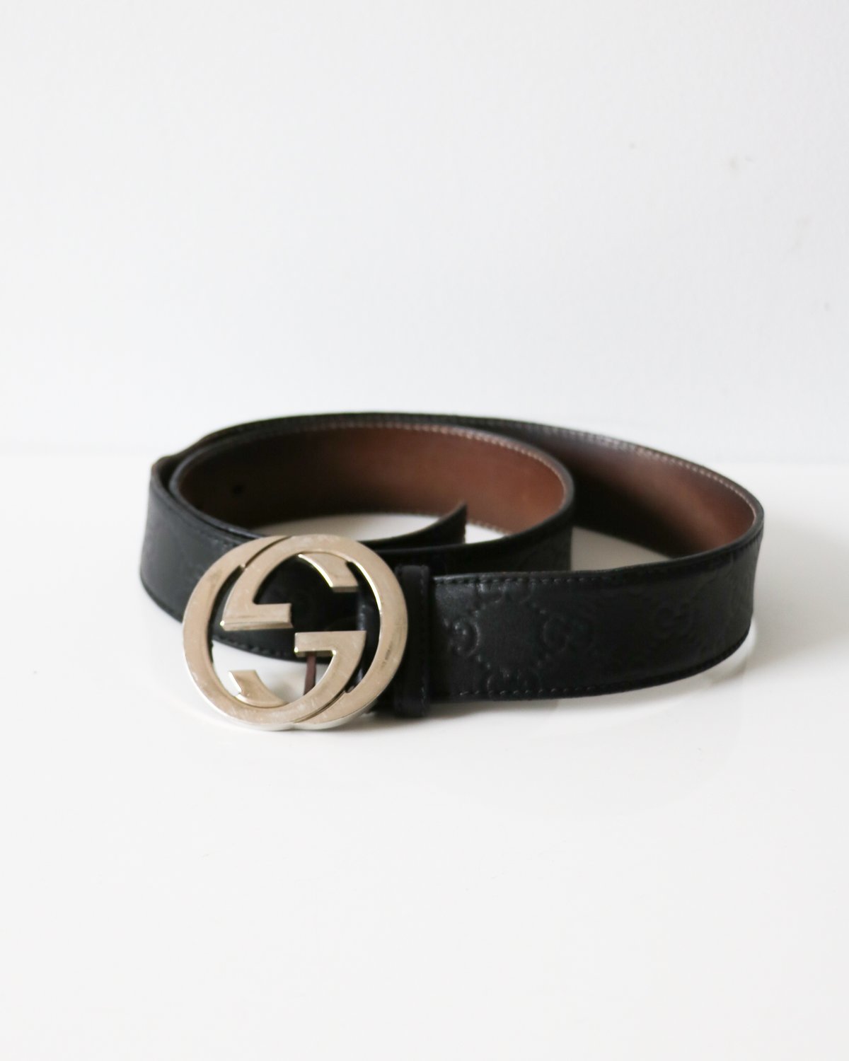 Pre-loved] Gucci Interlocking GG Belt gg belt silver buckle