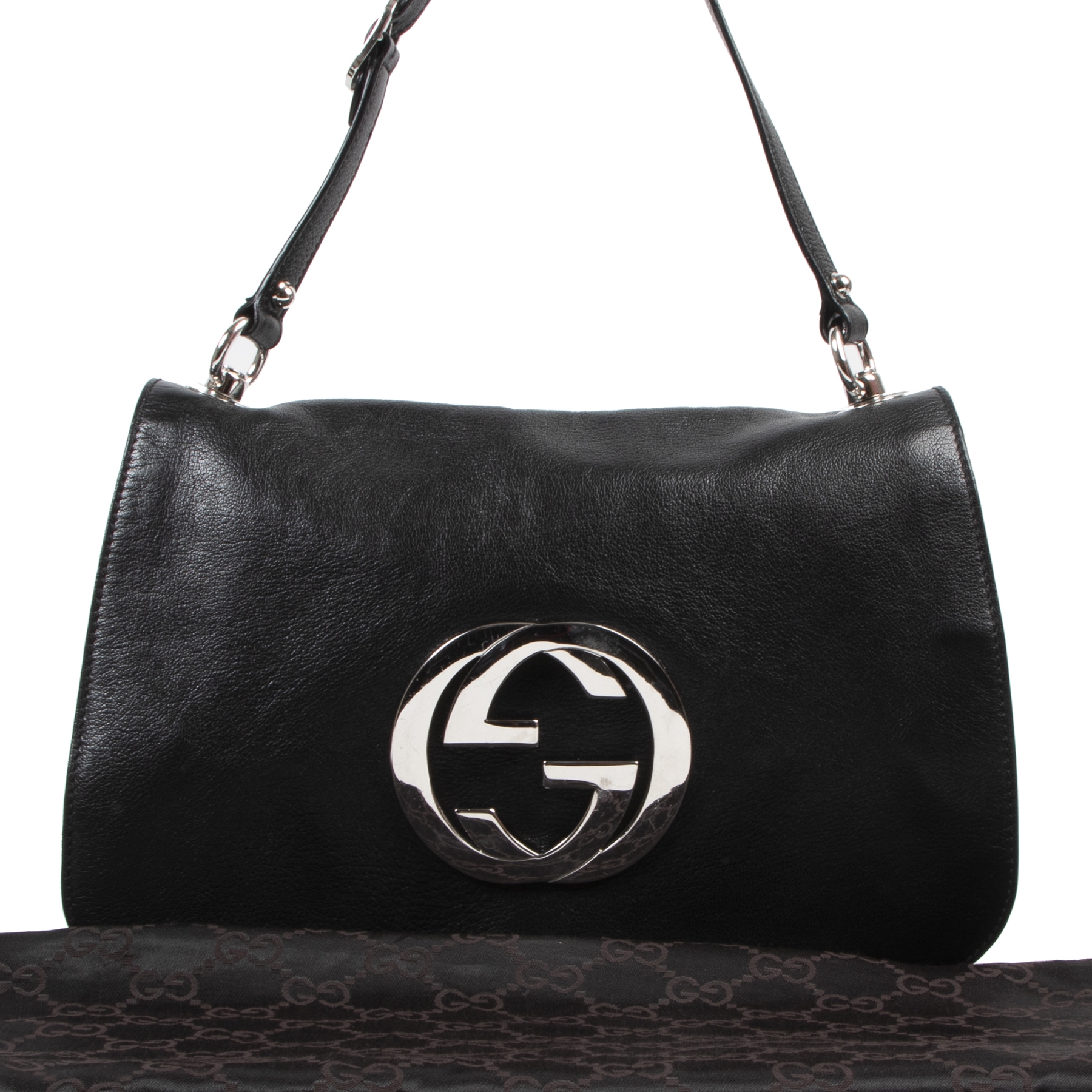 Labellov Gucci Black Leather GG Flap gucci black and silver bag