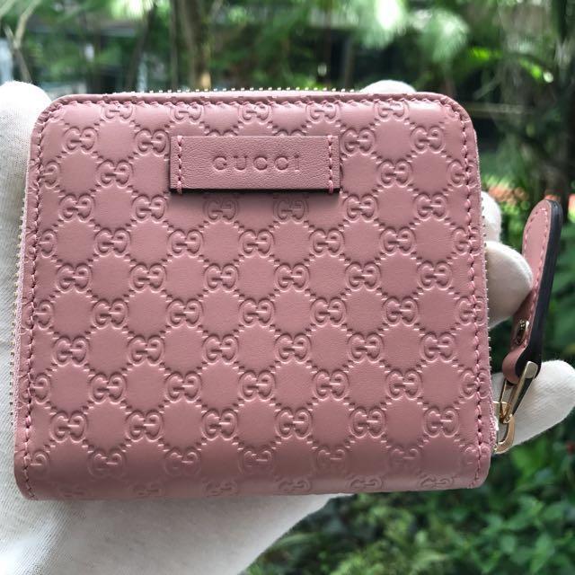 GUCCI Pink Leather Compact Wallet gucci pink leather bag