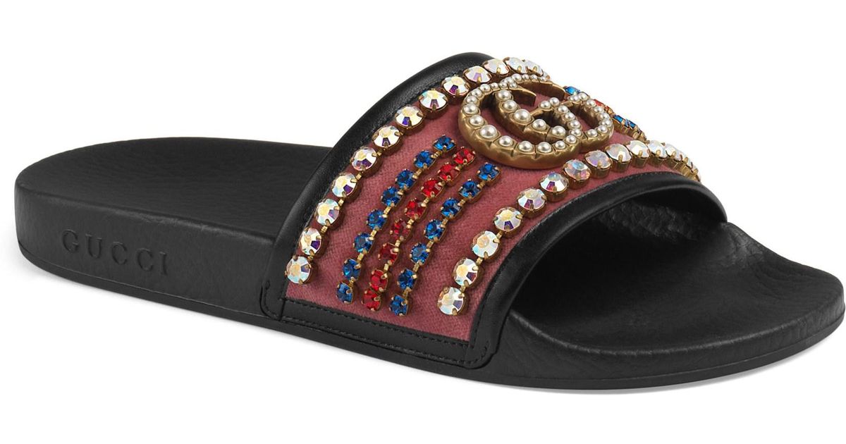 Gucci Velvet Pursuit GG Crystal Slides gucci bling slides