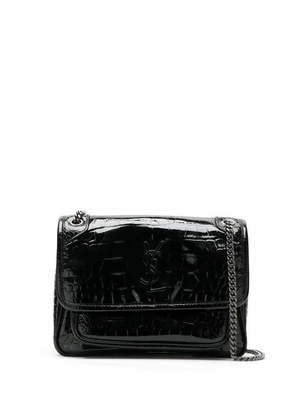 embossed crocodile leather bag ysl black leather bag
