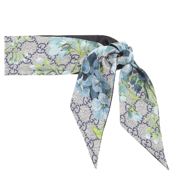 Gucci GG Blooms Skinny Silk Scarf, Blue gucci bloom silk scarf