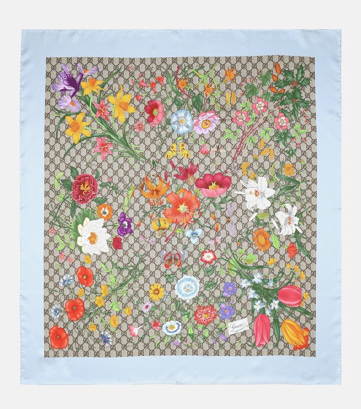 Gucci - Flora print GG silk twill scarf