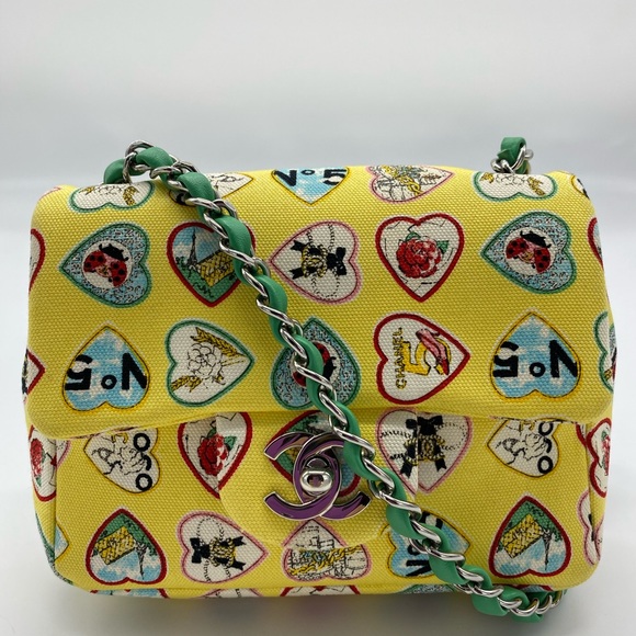 Chanel Heart Print Flap Mini Yellow chanel heart purse