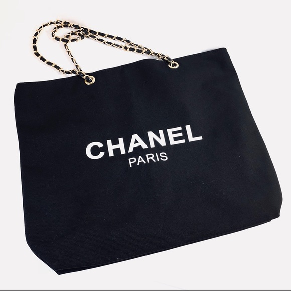 Chanel Gold Chain Canvas Tote Bag chanel cloth tote