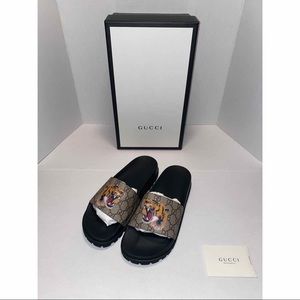 Gucci Gg Supreme Slide Tiger Rare Size gg supreme tiger slides