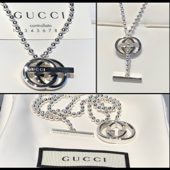 Gucci Sterling Silver Interlocking gucci double g necklace