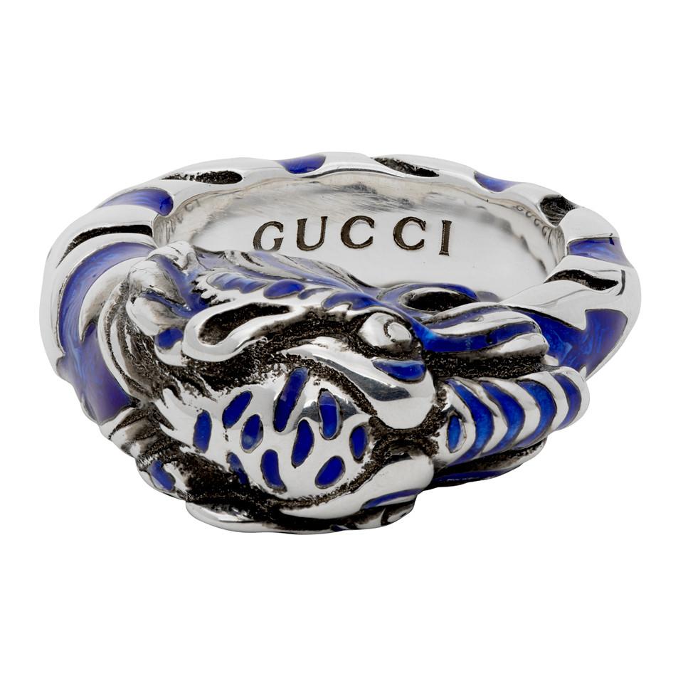 Gucci Silver And Blue Tiger Ring in gucci tiger ring silver