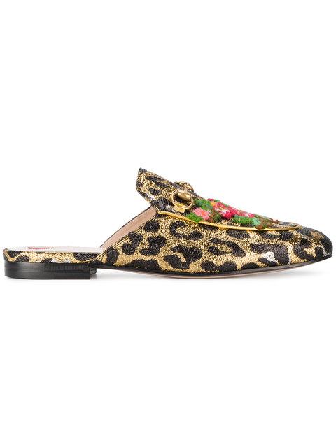 Gucci Leopard Embroidered Princetown gucci princetown leopard