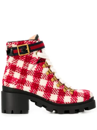block heel checked boots gucci white boots