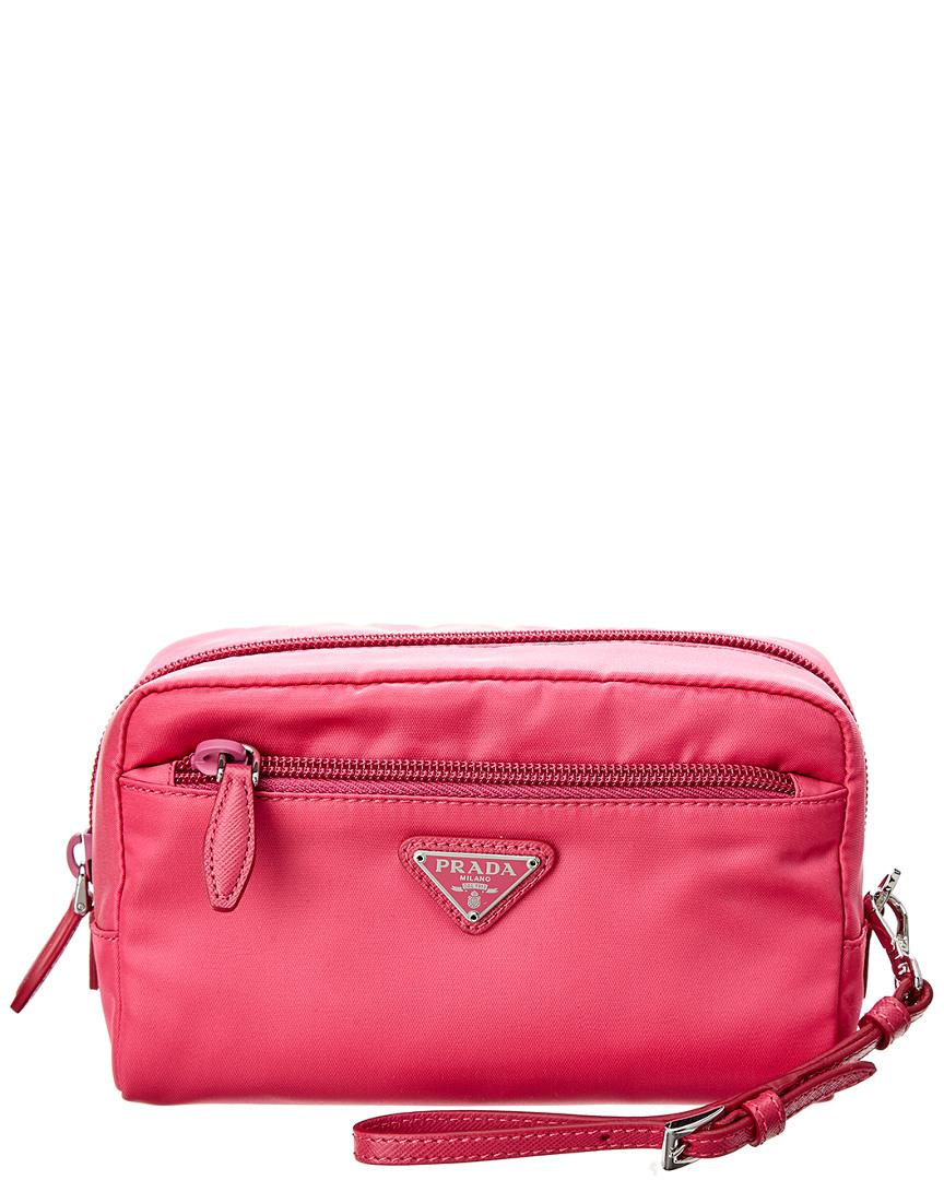 Prada Nylon Wristlet Pouch In Pink prada nylon wristlet