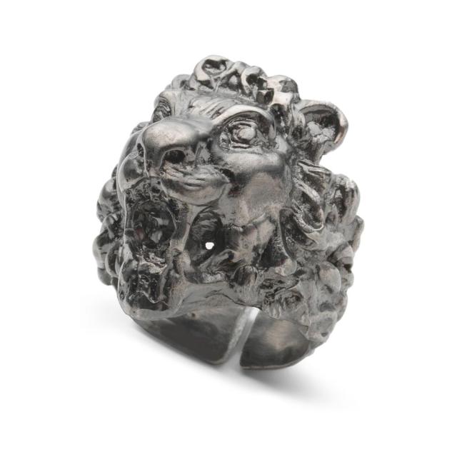 Aged Palladium Finish Lion Head Ring gucci silver lion ring