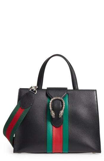 Gucci Dionysus Web Stripe Leather Satchel - Black In Nero/ Vert/ Red | ModeSens gucci dionysus web stripe