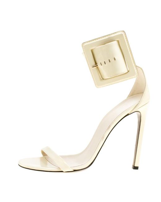 Gucci Cream Buckled Patent Leather cream gucci heels