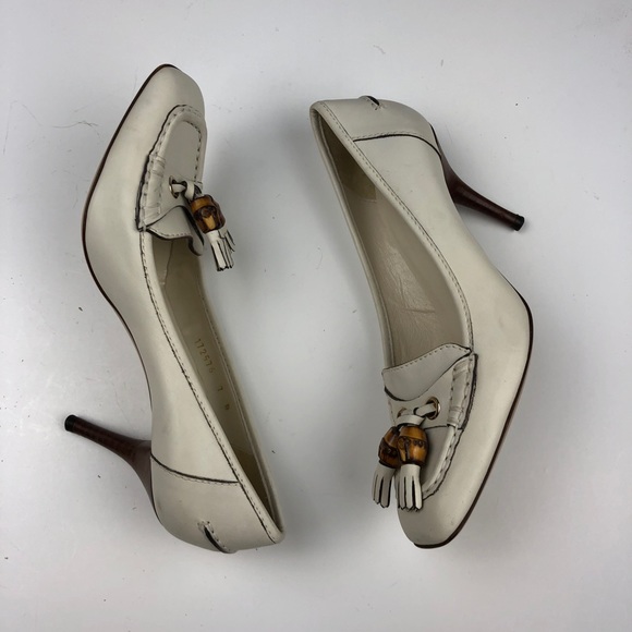 Gucci Cream Moccasin Heels With Bamboo cream gucci heels