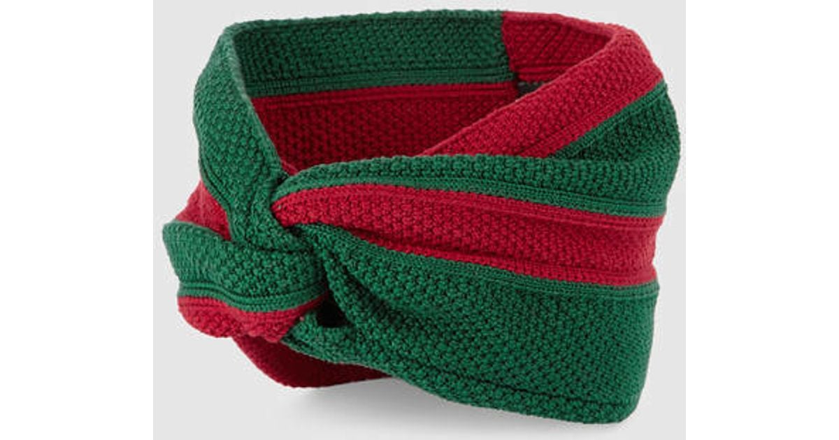 GUCCI Wool Web Headband M Green Red gucci wool headband