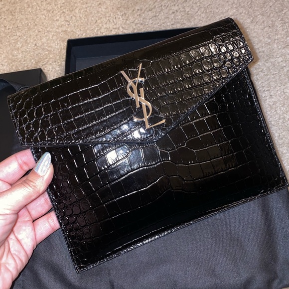 Ysl Uptown pouch in croc leather ysl black uptown pouch