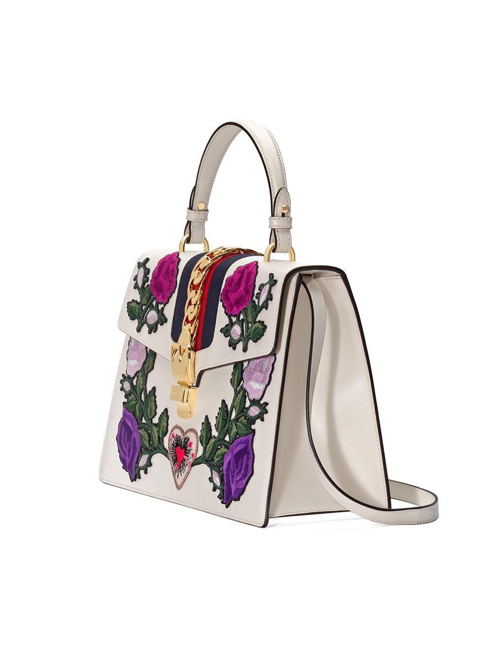 Gucci Medium Sylvie Embroidered Top sylvie embroidered medium top handle bag