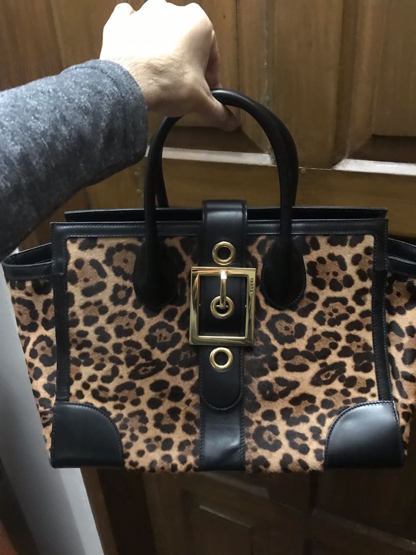 Gucci Leopard Print Calf Hair Buckle gucci leopard bag