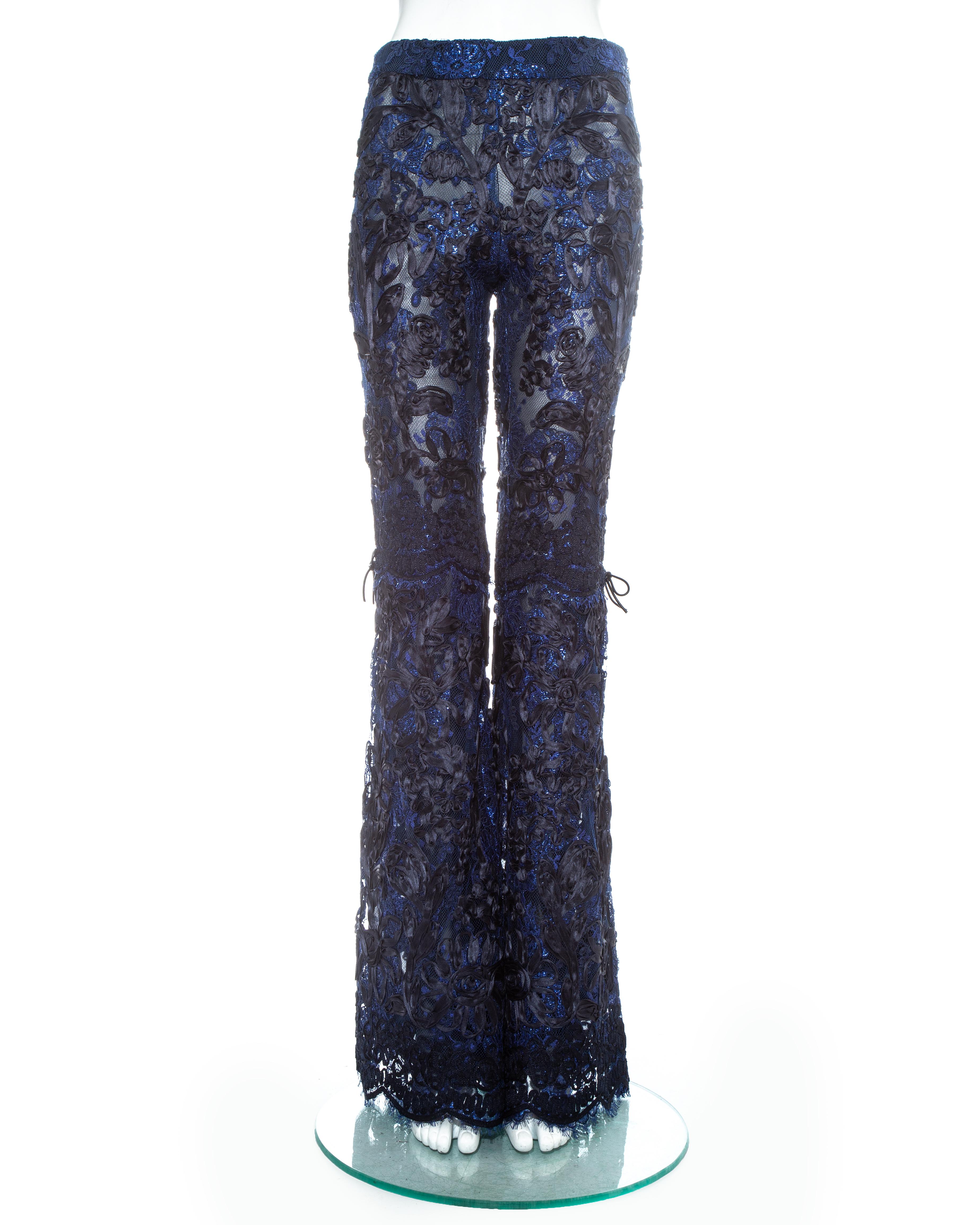 Gucci by Tom Ford blue embroidered lace gucci glitter pants