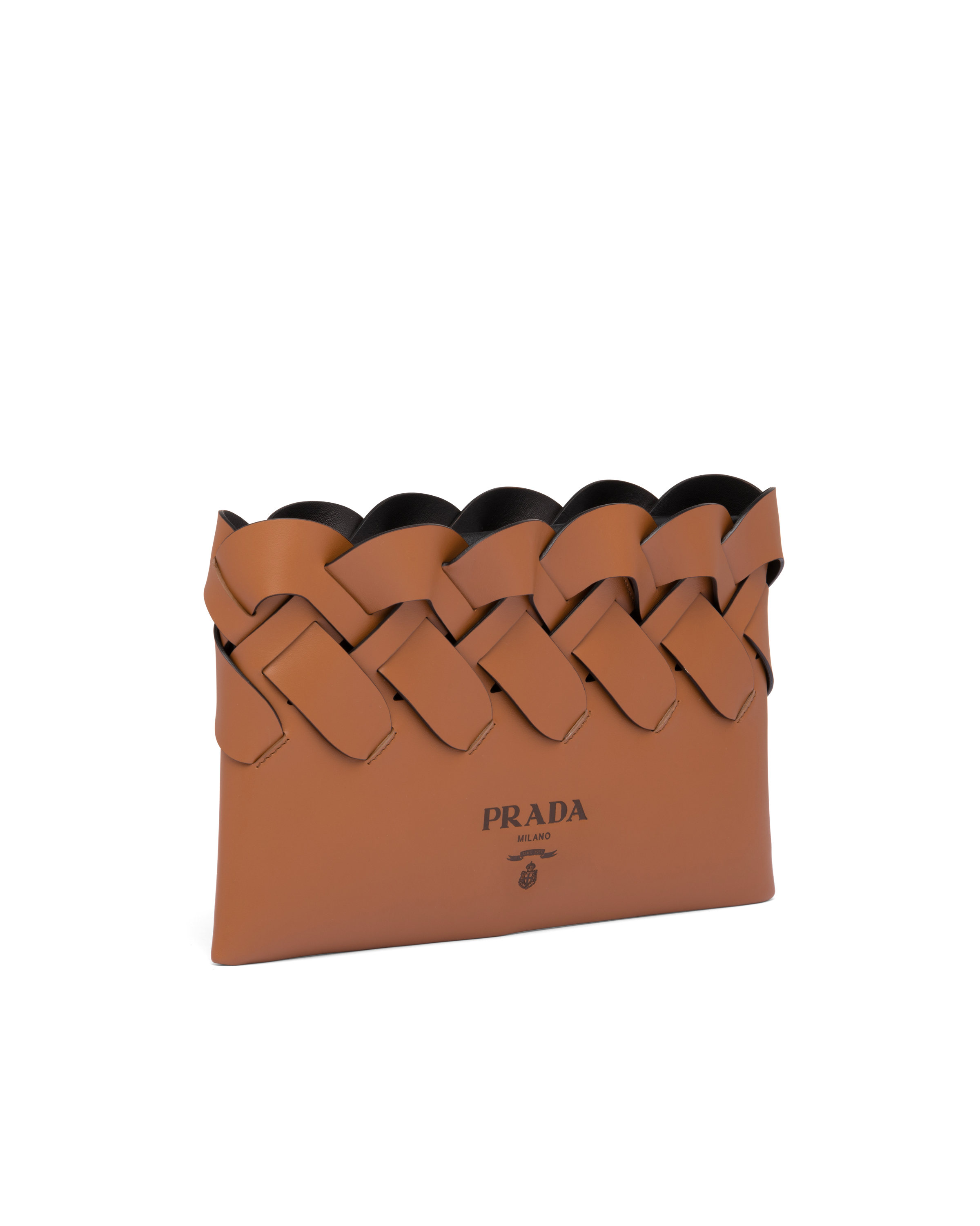 Prada Tress leather clutch with large prada woven