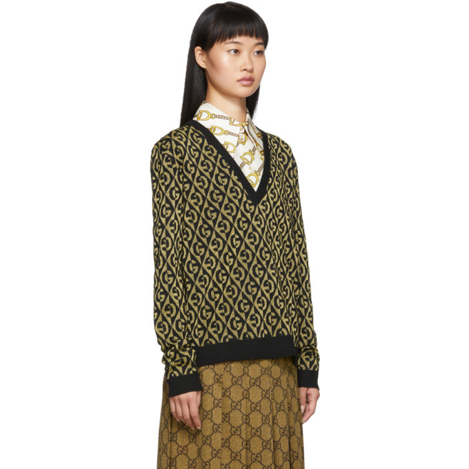 Gucci Gold and Black Lurex GG Sweater Gucci gucci gold sweater