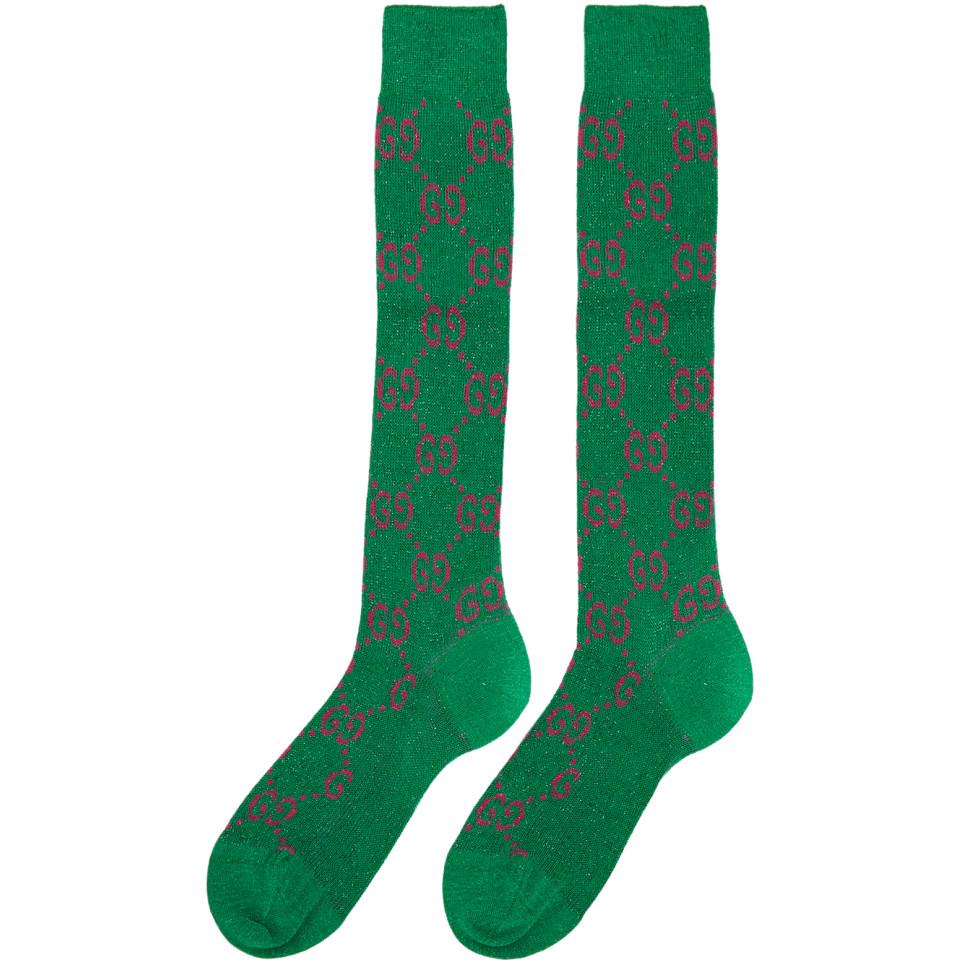 Gucci Cotton Lamé GG Socks in Emerald lime green gucci socks