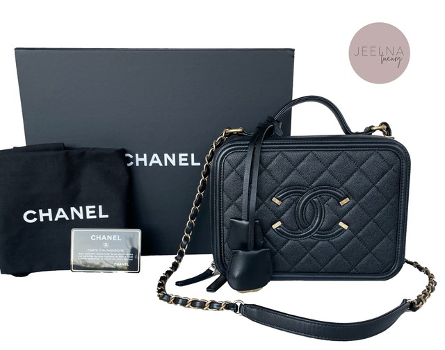 CHANEL Filigree Vanity Bag Black Cavier chanel vanity case beige