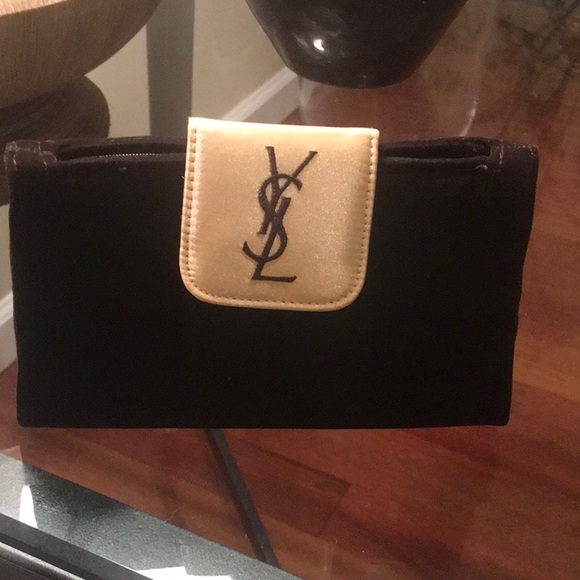 Saint Laurent Black Yves Parfums Satin ysl parfums bag