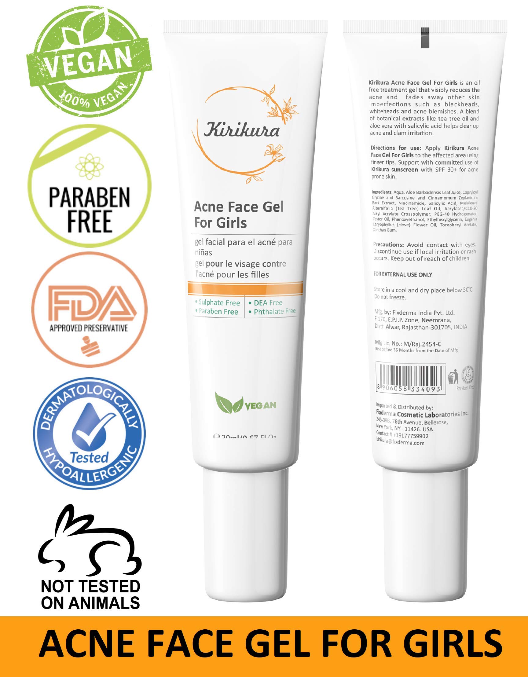 KIRIKURA Vegan ACNE Face Gel for Girls clean face gel