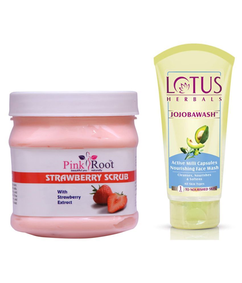 Pink Root Strawberry Scrub 500gm with lotus face wash strawberry