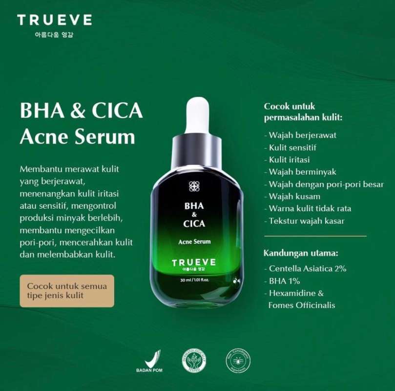 TRUEVE BHA \u0026 CICA Acne Serum Indonesia