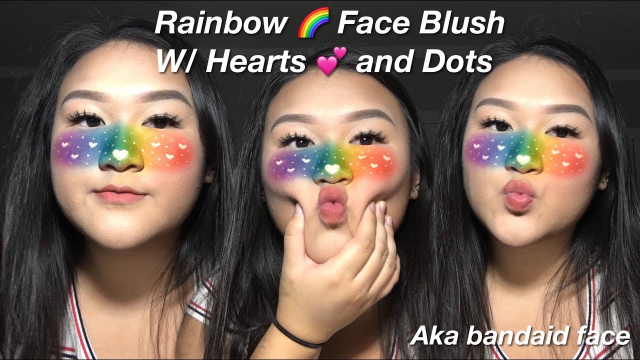 CUTE ANIME RAINBOW FACE BLUSH w/ HEARTS rainbow blush
